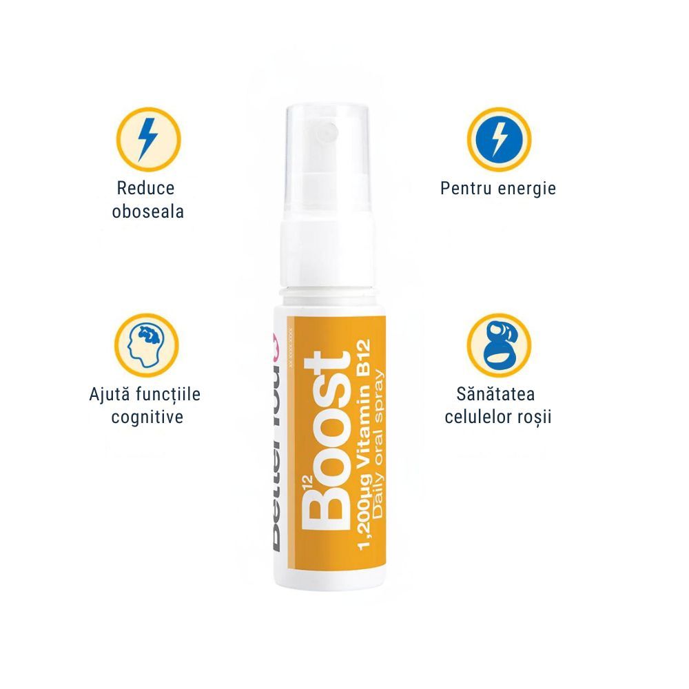 Boost B12 Oral Spray de la BetterYou conține cea mai bio-disponibilă formă de B12 (metilcobalamina), care este o formă activă de B12 prezentă în mod natural în metabolismul uman.
