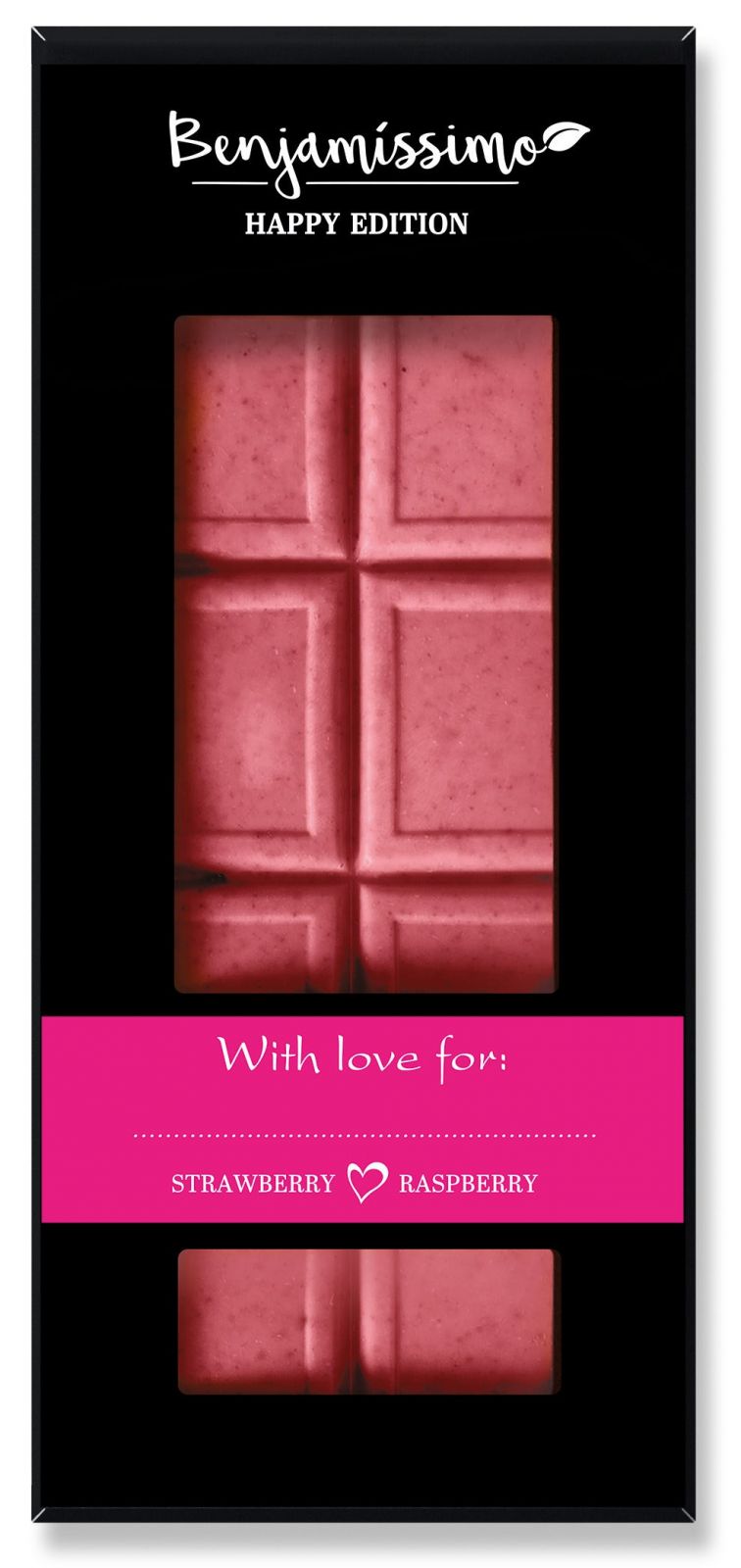 Ciocolata cu capsuni si zmeura bio, 60g, Benjamissimo