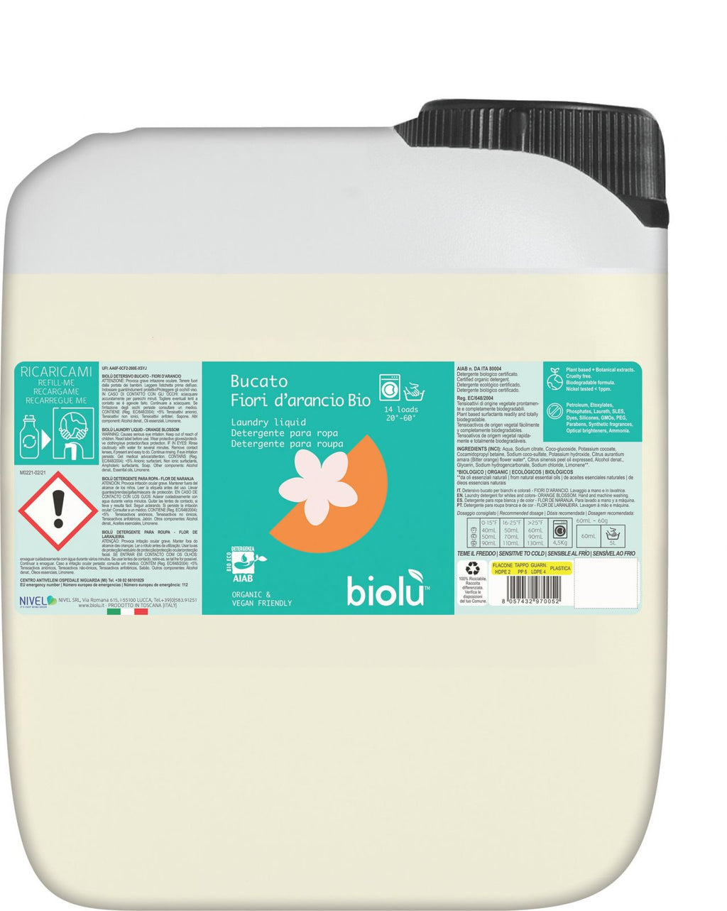 Detergent lichid pentru spalare manuala sau automata, pentru haine albe sau colorate. Cu extract din floare de portocal, din agricultura ecologica. Garanteaza o spalare uniforma, fara pete, chiar si la temperaturi scazute.