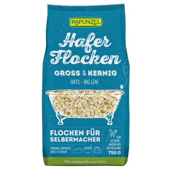 Ovazul bio este o adevarata boaba de energie, deoarece reprezinta o sursa valoroasa de proteine si este bogata în fibre. Deoarece cerealele întregi sunt transformate în fulgi, toti nutrientii din germeni si din straturile exterioare sunt retinuti. Deci, aceste fulgi de ovaz sunt 100% cereale integrale. Ele sunt, de asemenea, utilizate în retetele Rapunzel. Si aici ne bazam pe cerealele locale la cea mai buna calitate organica. În forma lor pura, puteti face multe lucruri singur rapid si usor cu fulgii.