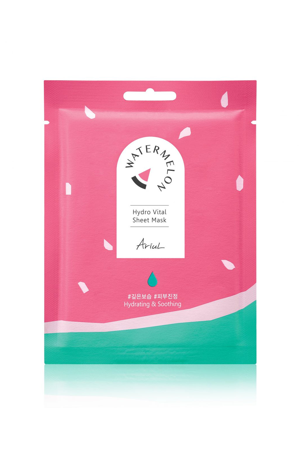 Masca compresă Ariul Watermelon Hydro Vital, cu extract de pepene roșu (10,000ppm) și triplu acid hialuronic conferă hidratare intensă și un aspect mai tânăr tenului stresat.