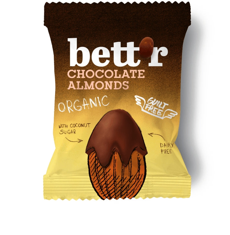 Migdale delicioase, invelite intr-un strat delicios de ciocolata bio.