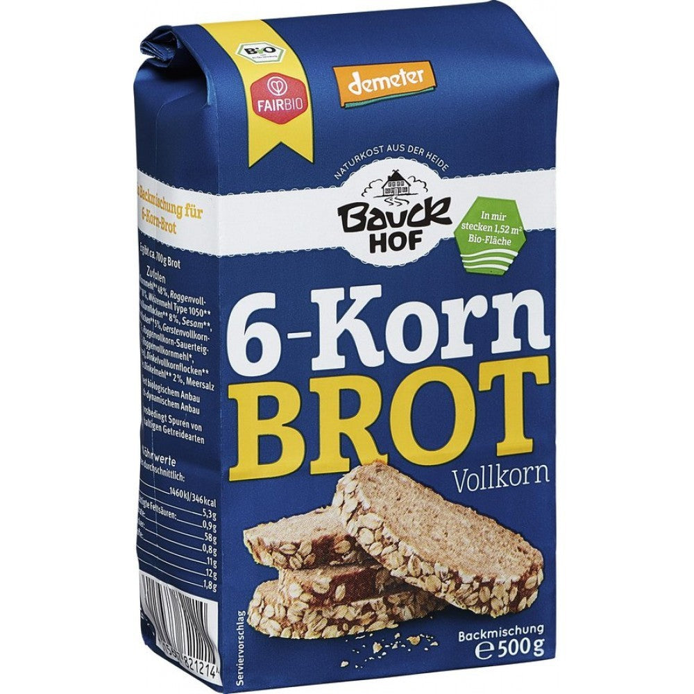 Pentru Mix-ul de paine bio cu 6 cereale folosim cereale Demeter care este produsa în cultivarea biodinamica. Biodinamica este cea mai veche si mai stricta forma de agricultura ecologica. Dieta antroposofica cu alimente Demeter face parte dintr-un mod de viata holistic, care ar trebui sa aduca corpul si mintea fiintei umane în armonie cu natura. Se recomanda o dieta vegetariana cu o multime de produse din cereale integrale în combinatie cu alimente proaspete din cele trei domenii ale „radacinii, frunzelor si fructelor”.
