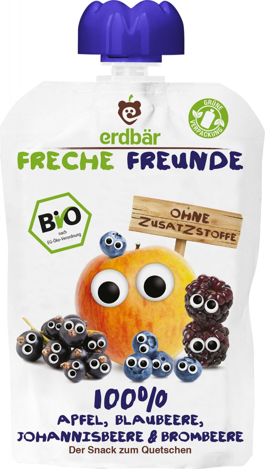 Ingrediente: piure de mere* (80%), piure de afine* (10%), piure de coacaze negre*(5%), piure de mure*(5%). Nimic altceva.