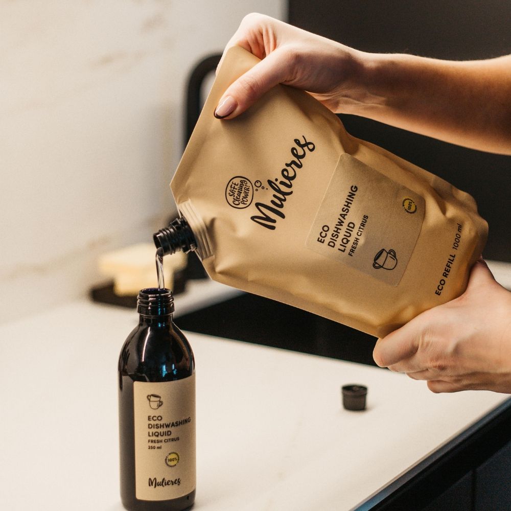 Refill Detergent lichid vase 99.7% ingrediente naturale Fresh Citrus (1000 ml), Mulieres
