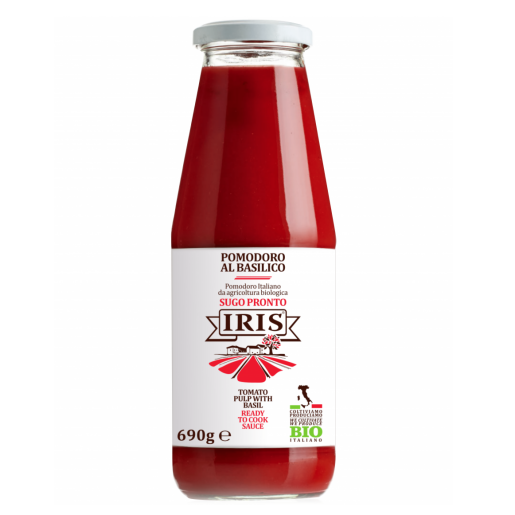 Produsul Rosii pasate cu Busuioc Iris Bio este realizat din roșii cultivate, fabricate și certificate conform metodelor și standardelor agriculturii ecologice. Culturile din provincia Cremona sunt deosebit de favorizate de caracteristicile terenurilor agricole și ale climei. Dupa recoltare rosiile sunt procesate crude fara adaos de zahar si pasteurizate dupa ambalare pentru a mentine proprietatile organoleptice ale materiei prime si rosiile tocate si Busuioc.