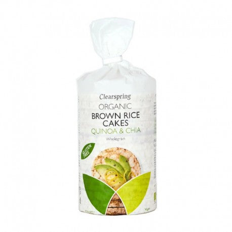 Rondele de orez integral cu quinoa si chia, usoare si crocante. Aceste tartine ecologice Clearspring sunt preparate din orez integral expandat cu quinoa si chia si au doar 28 de calori pe bucata, constituindu-se intr-o gustare sanatoasa si delicioasa, ce se poate servi intre mese sau la orice ocazie. Serviti-le direct din pachet sau cu toppingul preferat!